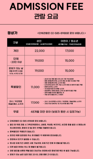 성인 / 청소년 및 어린이 1인 1매 16,500원