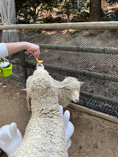 양들이 먹이를 보고 달려들기 때문에 어른이 먹이통을 들고 입장하는 것이 안전해요.