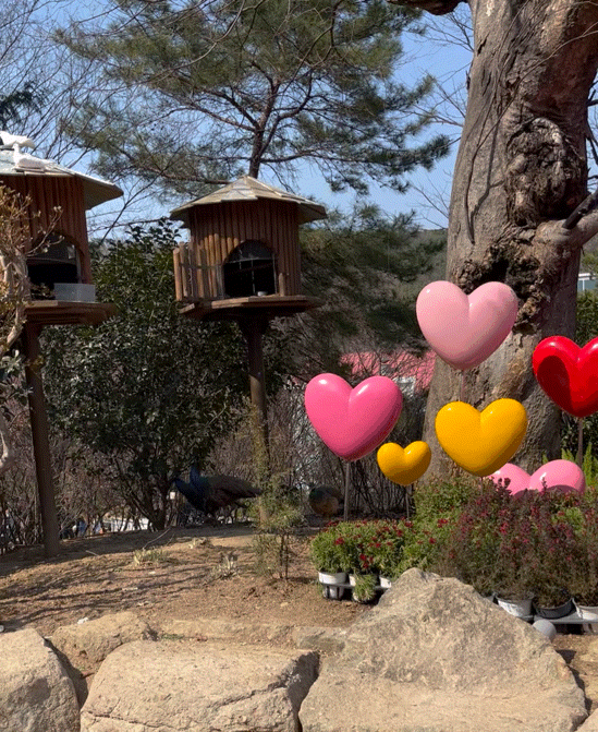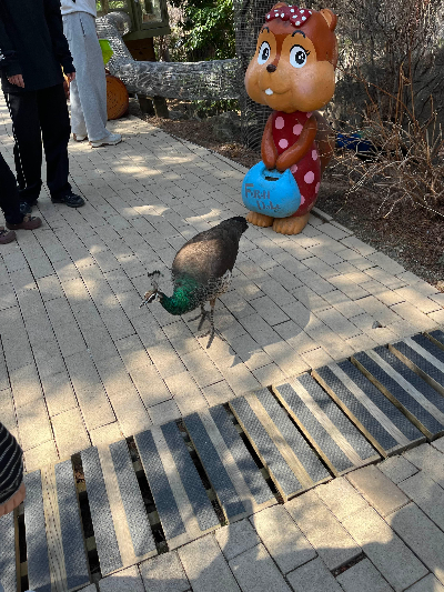 직원분이 호루라기를 불자 공작새들이 한 곳에 모이는 장면을 볼 수 있었어요.