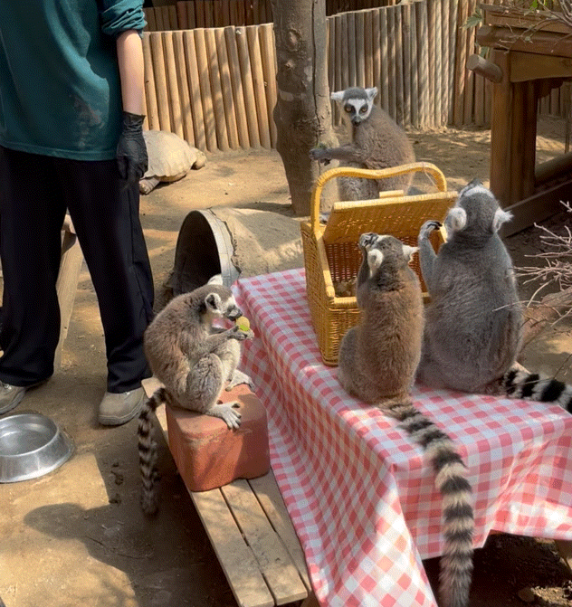 때마침 저희가 방문한 시간이 알락꼬리여우원숭이 간식시간이었는데,