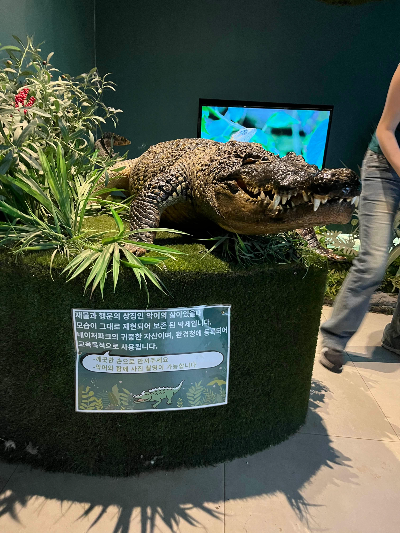 다양한 파충류와 함께 박제된 악어도 전시되어 흥미로웠습니다.