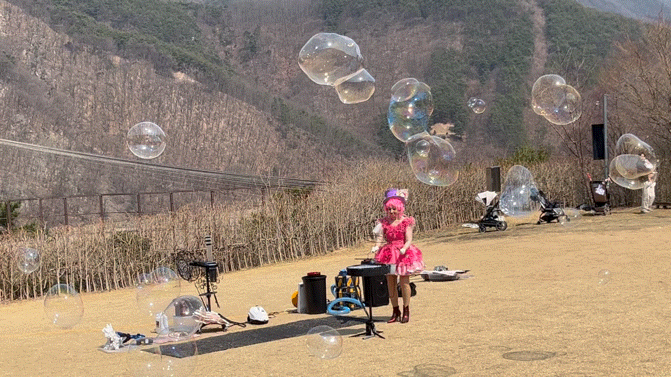 저희가 방문한 3월 22일에는 오후 1시부터 잔디 공연장에서 버블쇼와 범블비 공연이 진행되었어요.