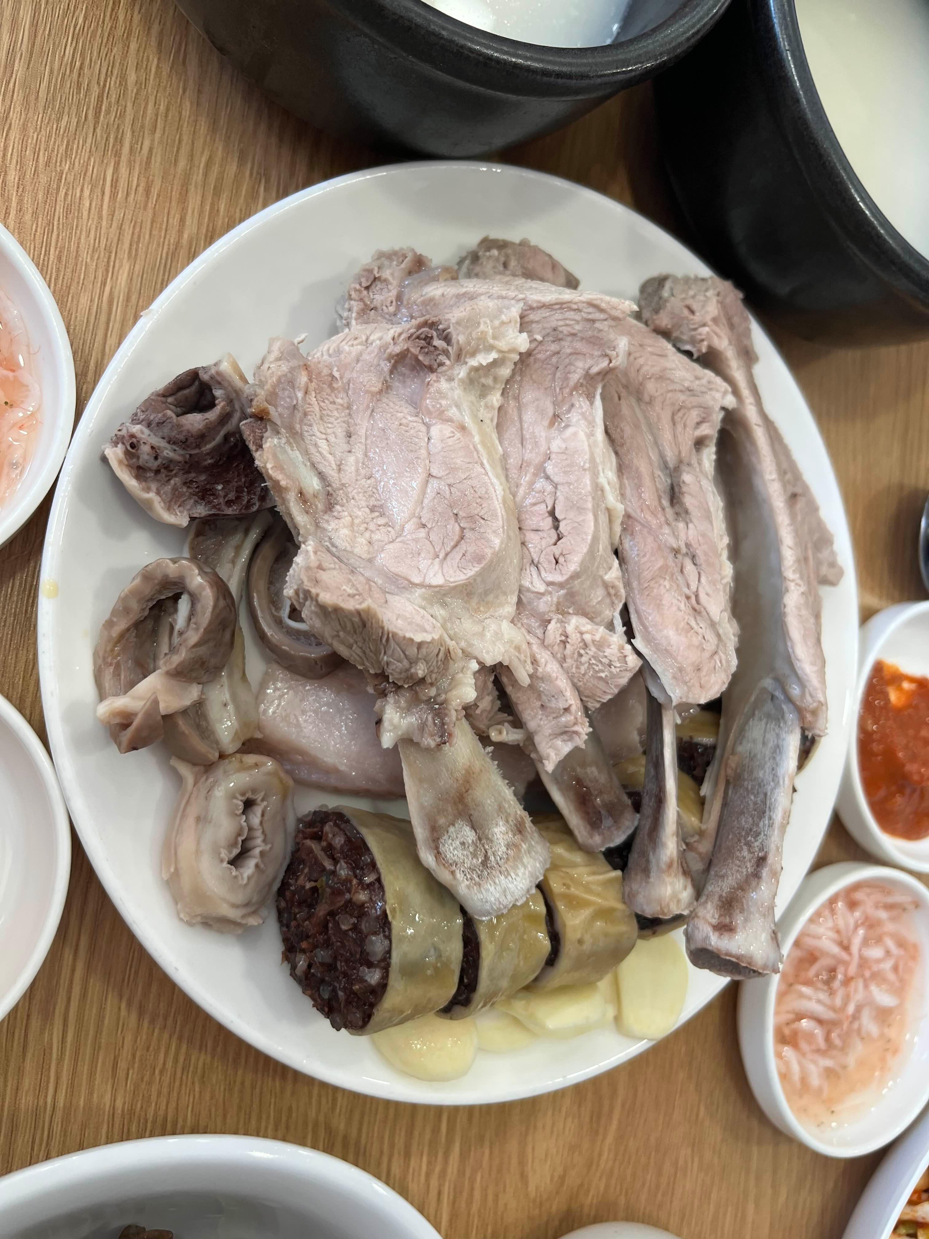 박시웅의 8번식당에선 순대국밥과 섞어국밥, 그리고 수육(중)을 주문했어요. 특히 순대가 참 인상 깊었는데요. 대구 전통 '막창순대'를 사용하더라고요. 막창순대는 이름 그대로 막창에 소를 넣어 만든 순대예요. 저는 이번 방문이 막창순대와의 첫 만남이었는데, 처음 먹보는 식감이 생소하면서도 고소하고 쫄깃해서 정말 맛있었어요.