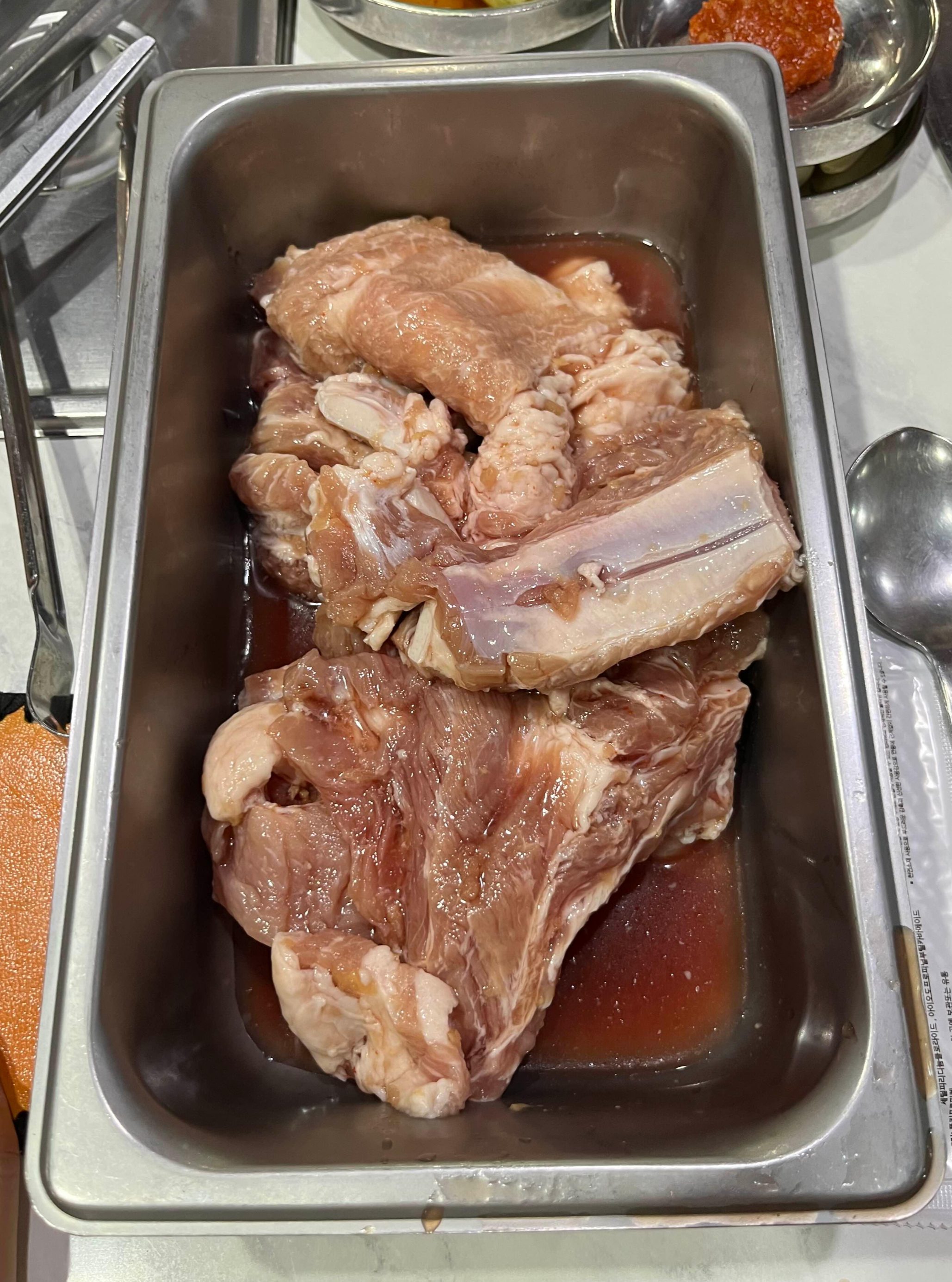 처음엔 어색했지만, 돼지갈비 소스를 곁들여 비벼 먹으니 꽤 괜찮은 조합이었어요.
