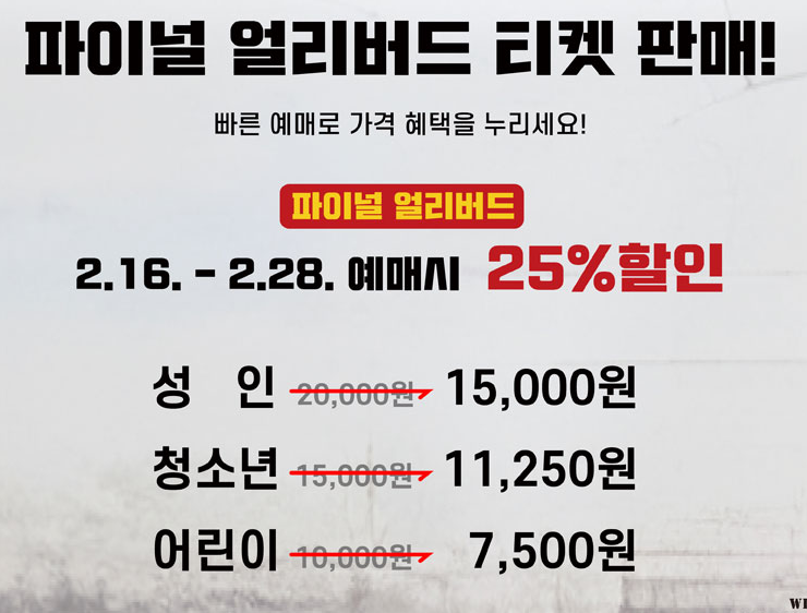 파이널 얼리버드도 정상가에서 25%나 할인을 해준답니다.