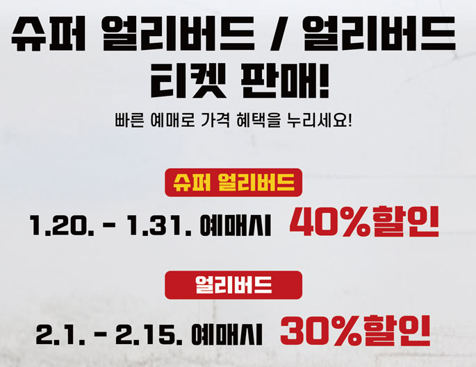 슈퍼얼리버드 40%, 얼리버드 30%보다는 할인률이 낮지만