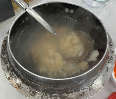 자극적인 생태탕과 라면사리를 먹은 후 구수한 누룽지로 식사를 마무리했습니다.