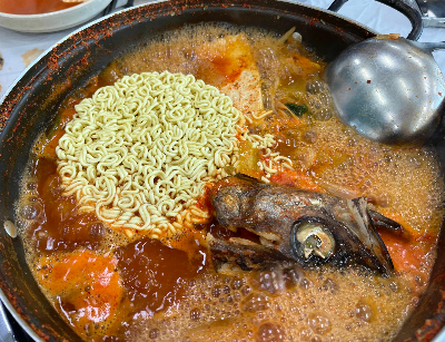 생태탕, 라면사리 그리고 누룽지까지 완벽한 한 끼 식사였습니다.