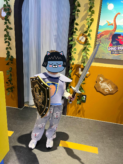 운 좋게 '잠자는 숲 속의 공주 구하기' 테마를 배정받았고, 기사 의상을 입은 첫째는 칼과 방패를 들고 의욕 뿜뿜! 미션을 수행하는 내내 웃음이 끊이질 않았어요.