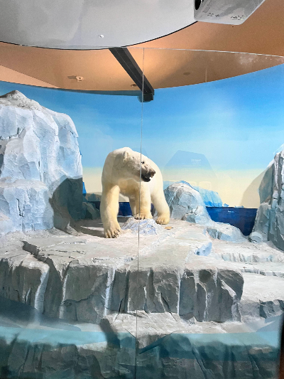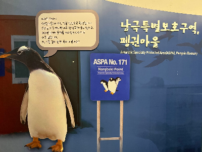 극지관은 대부분 박제 형태의 전시지만, '펭귄마을'이 조성되어 있어 살아있는 펭귄을 볼 수 있어요. 앞에 의자가 마련되어 있어서 휴식을 취하며 펭귄은 볼 수 있어서 좋았답니다. 극지의 차가운 느낌을 그대로 재현한 전시 환경이 인상 깊었어요.
