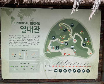 총 5개의 생태관을 관람하는데 2시간 정도 걸렸어요. 전체 관람은 약 3시간 정도 소요되었어요. 다양한 전시와 체험 요소, 사진 찍기 좋은 스폿까지 가득해서 지루할 틈이 없었답니다. 입장 시 안내판에 있는 '오늘의 식물' 찾기 미션은 평소 식물에는 관심이 없던 아이들의 집중력과 탐구심을 높여주는 요소로 아주 좋았어요.