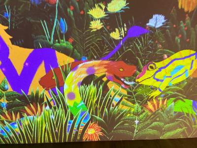 기획전시실에는 개미세계탐험전 외에도 ' 명화롤 만나는 생태' 전시가 함께 진행 중입니다. 이 전시는 2025년 8월 31일까지이며, 명화 속 동물들을 색칠하고 스크린을 통해 앙리루소의 작품 속 장면에서 내가 색칠한 동물을 만날 수 있는 체험형 전시입니다.