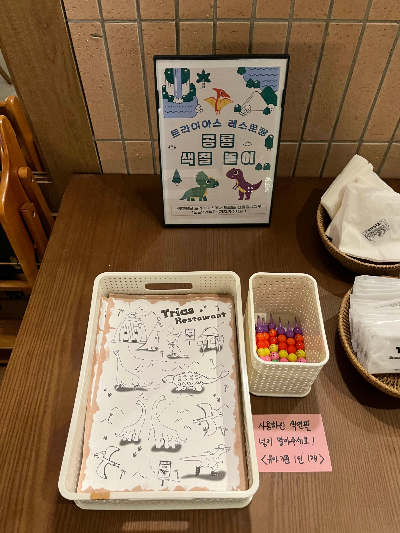 - TIP : 공룡 좋아하는 아이에게 강력 추천! 색칠놀이, 공룡 전시, 어린이 메뉴 다양