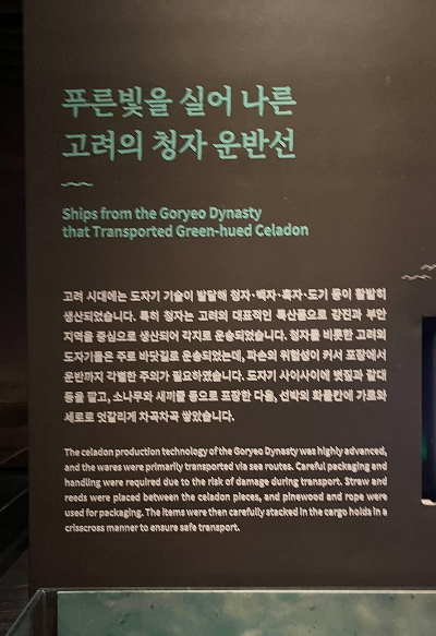 고려 시대에 활발히 생산된 청자들이 배로 어떻게 운송이 되었는지 보여주는 배입니다.