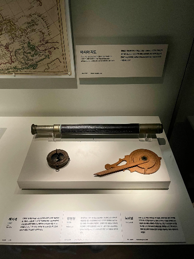영국에서 제작된 아시아 지도, 망원경, 녹터널 등이 전시되어 있었어요.