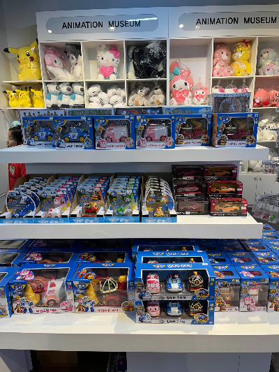 애니메이션박물관 관람을 마치고 나오면 뮤지엄샵이 기다리고 있어요. 이곳에서는 다양한 장난감, 문구류 등을 판매 중인데, 제가 가장 놀랐던 건 로봇태권 V 피겨와 장난감이 실제로 판매되고 있어다는 점이었어요!
