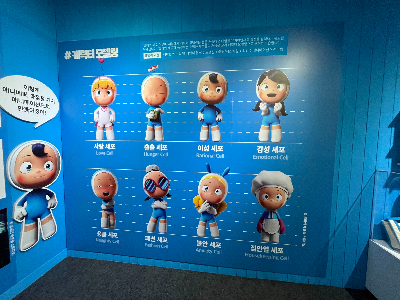 이 공간은 원작 웹툰과 애니메이션 속 세포들을 실제로 구현해 놓은 테마 전시 공간으로 감정세포, 이성세포, 허세 세포 등 다양한 세포들이 각자의 역할을 소개하는 구조로 구성되어 있었어요.