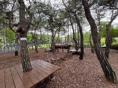 이곳은 만 3세부터 5세까지의 유아들이 자연 속에서 자유롭게 뛰놀며 감성과 창의성을 키울 수 있는 공간으로, 숲놀이터 형태로 구성되어 있었어요.