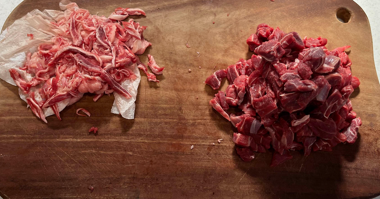 힘줄 제거 후 실제 고기 무게는 523g! 처음 해보는 작업이라 약 25분 정도 소요됐고, 손도 많이 가고 생각보다 힘들었지만 고기가 부드럽게 익어 아이들이 고기를 뱉지 않고 잘 먹는 모습을 보니 뿌듯했어요.
